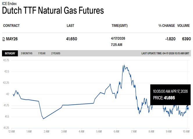 Plyn se dnes vesměs drží pod 42 EUR/MWh.